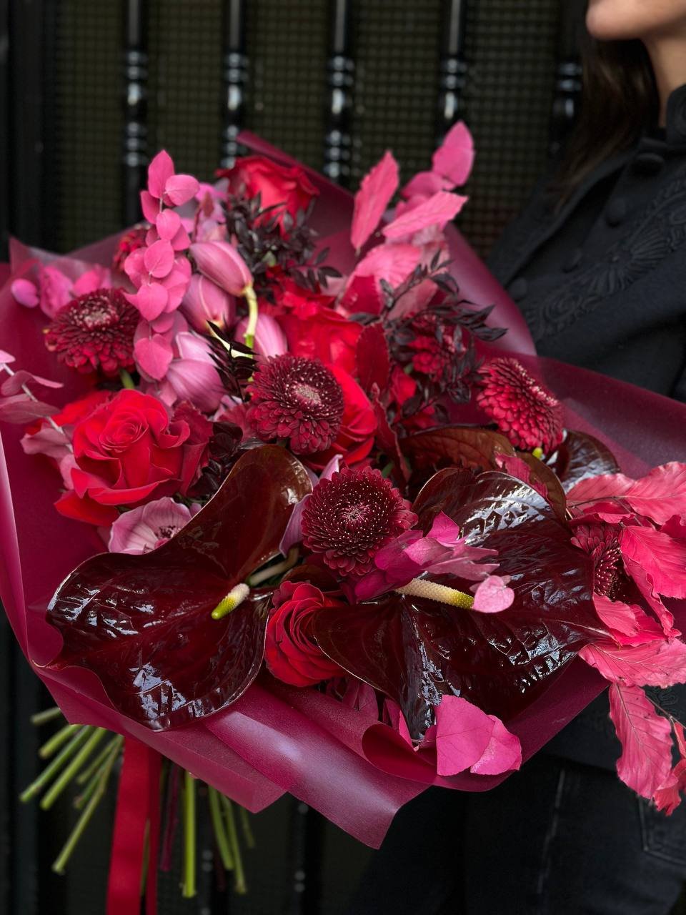 Bright red and pink bouquet carefully crafted to express your deepest romantic feelings.